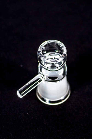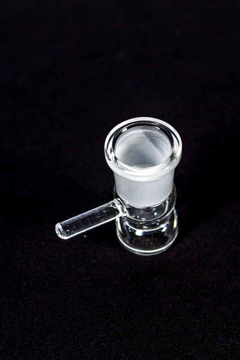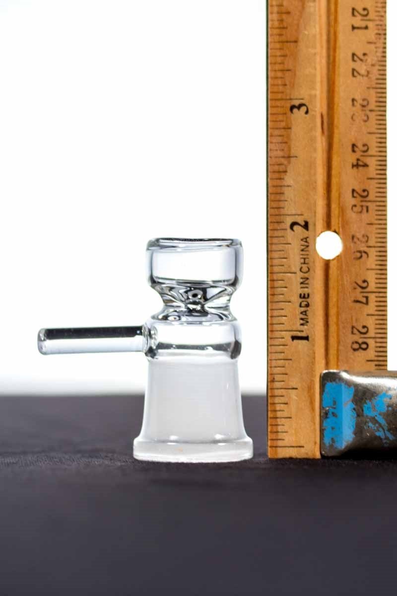 18mm Female Slider Glass Bowl is a replacement glass bowl for herbs or tobacco use which can fit on to your 18mm male joint. This 18mm female glass bowl has a 1'' long handle on the side. This clear glass bowl is made of High-Grade Borosilicate Glass so this is pretty strong. If you need a replacement female glass bowl or a backup one, this female glass bowl is good for you. We also offer 14mm female slide glass bowl.