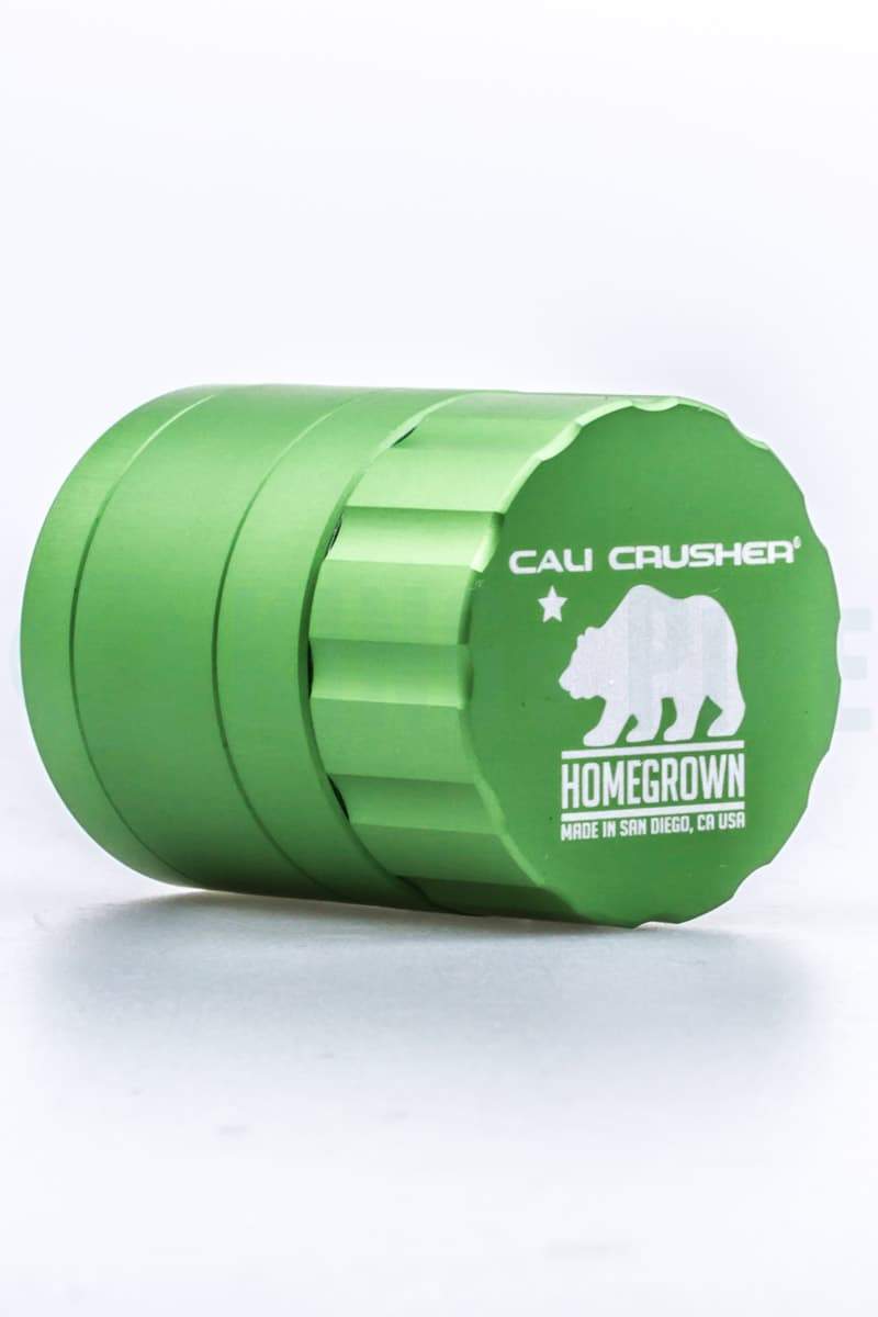 Experience the next level in grinder technology with the Cali Crusher - Homegrown Pocket 4 Piece Grinder. Made in San Diego, CA, this pocket-sized herb grinder has now arrived at our online smoke shop and it proudly features an Aerospace Medical Grade Aluminum, Radial Cut Blades, Removable Screen, and a New Blade Layout for an adjustable loading capability. This sturdy little grinder may be small in size but it is made to be efficient and long-lasting. Grab a set of these and you'll also get a Guitar Pick Scraper. It also has different color choices to suit your personality. Get this for less than $80 here at KING's Pipe Online Headshop.