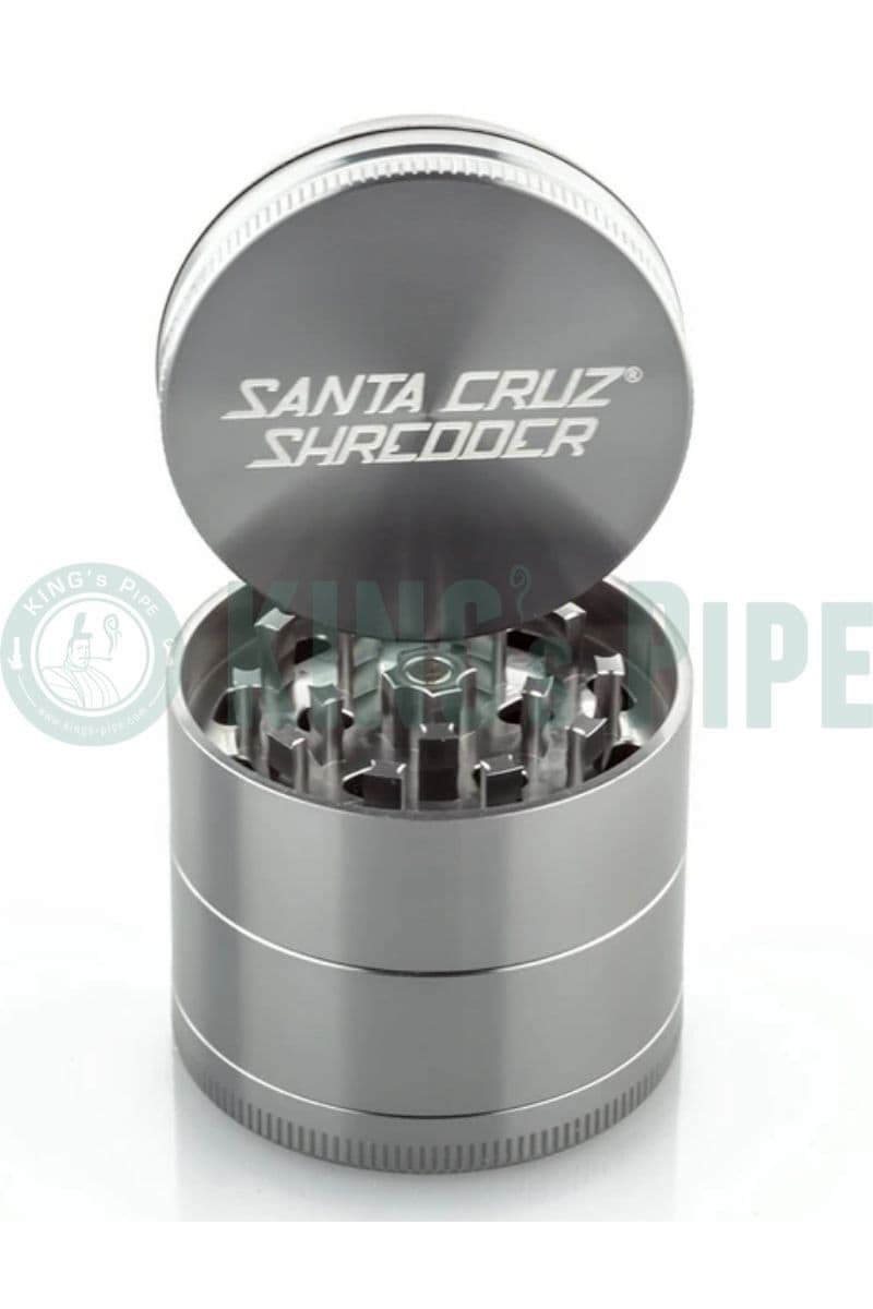 2'' Medium 4 Piece Herb Grinder manufactured by Santa Cruz Shredder in California is a quality grinder. The shredder grinders made out of anodized aluminum come in 5 different colors to choose from Black, Green, Rasta, Orange, and Gold (depending on availability). These Grinders have a strong magnetic close top-lit that snaps together every time. They have 3 chambers: 1. The grinder 2. The coarse screen and 3. The fine screen section. It also comes with a Santa Cruz branded triangle guitar pick style tool to scrape up your kief. The teeth of the grinder come with a lifetime warranty against dulling or breaking.