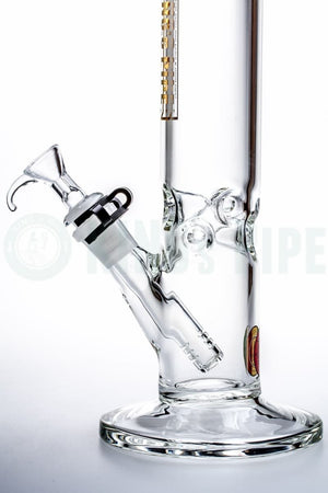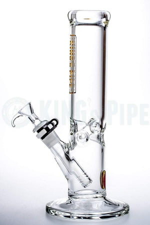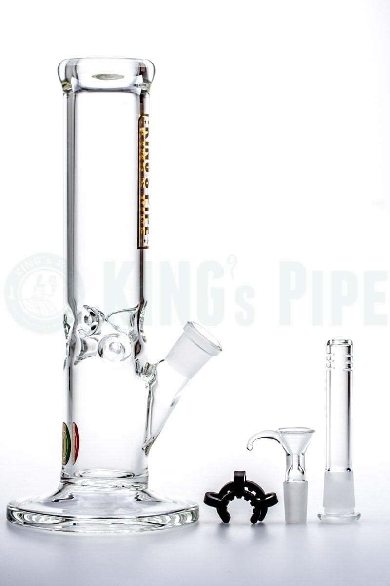 The perfect-sized 10-inch Glass on Glass Straight Water Pipe is an old-school, classic-styled, cylindrical scientific glass bong that is still very popular among the smoking community. Including an ice pinch, 18mm Female joint, diffused downstem, an 18mm joint glass bowl, and a keck clip, this American glass water pipe is ideal for everyday use for you and your buddies! Match this with KING's Pipe Online Headshop's super-low online price and enjoy your new dry herb or tobacco bong, today!