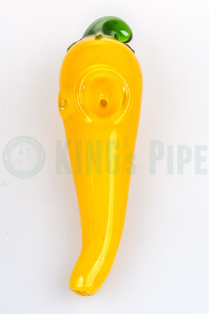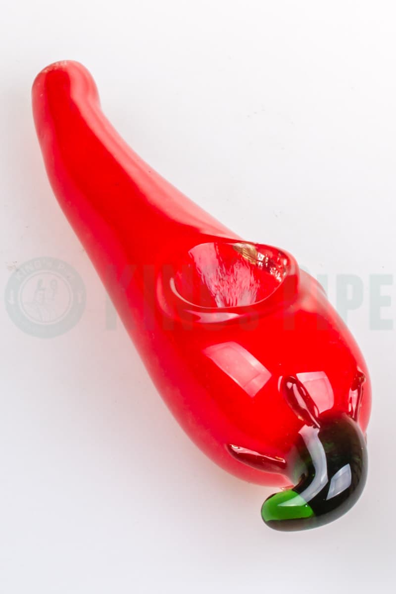 Make the Chili Pepper Glass Hand Pipe your best toking buddy with its thick glass physique and colorful tasty design. This chili pepper-themed glass pipe features a deep push bowl design and a left carb hole that helps eliminate your need for using traditional cigars making your smoking habit more healthier. The Hot Chili Pepper Pipe is approximately 5 inches long and conveniently fits the palm of your hand so you can take this along as you travel. It has a durable construction as it is made using premium quality Borosilicate glass so you can be sure that this hand pipe will be sticking around for a long time. The Chili Pepper Glass Pipe is available for a price less than $30 here at KING's Pipe.