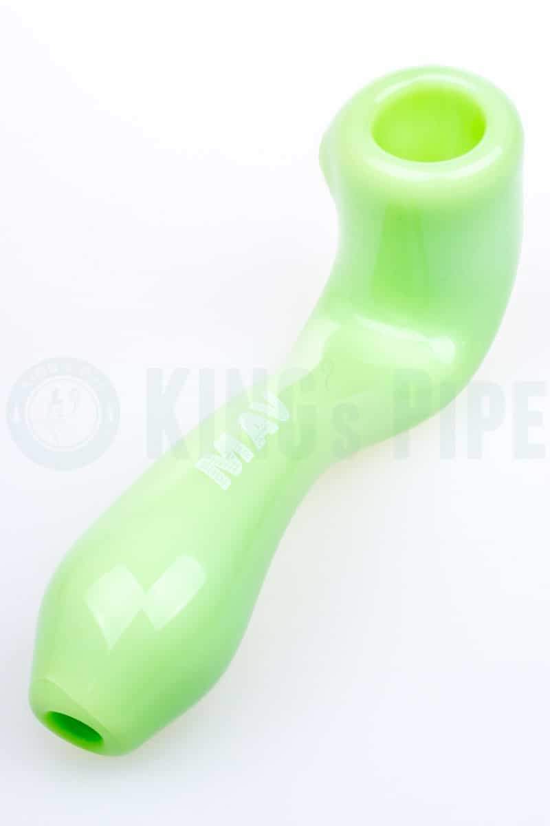 The Maverick Glass 5.5" long Sherlock Pipes are the perfect take-along American, glass pipe! Available in 4 gorgeous colors: Amber (transparent), Black, Blue, & Purple (transparent). This glass, Sherlock style, tobacco pipe is built with a deep push bowl design & left side carb hole and can easily be brought along with you to any music festival or gathering. Get yours now with KING's Pipe Online Smokeshop's great sale price! So affordable you can even get a couple for some friends!
