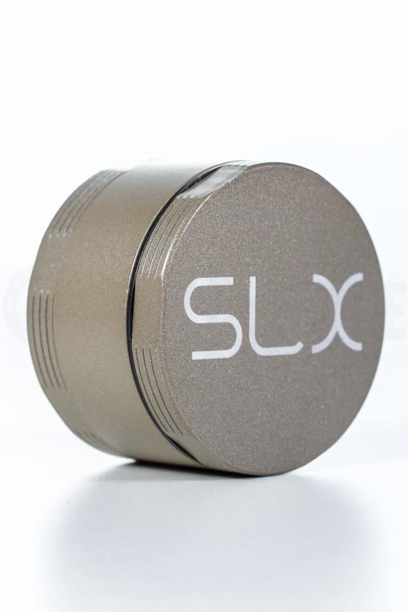 2-inch SLX Grinder is coated with a non-stick proprietary ceramic that’s used to reduce friction on industrial blades, cutting tools, and Machete’s Knives =D….. The coating on this SLX 2'' grinder will never chip, flake, or burn. The texture feels really good in your hand. The top holds on with a strong magnetic pull. It has 3 chambers: 1. The grinder 2. The coarse screen section 3. The fine screen section and breaks down to 4 pieces. The SLX 2'' Non-Stick high-quality Grinder also comes with a little tool to pick up your kief! Color choices are gold or silver.