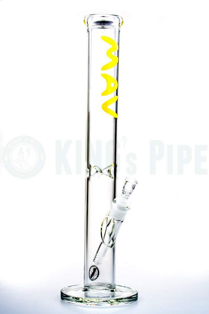 The MAV Glass Straight Water Pipe is a massive 18" sleek & simple, classic beauty. With a single Maverick Glass logo decal right beneath the mouthpiece, and a clear premium-quality, 5mm thick, Borosilicate glass body, this scientific glass bong will definitely last you years on end of smoke sessions. Featuring an ice catcher in it's bottleneck for a cooler alternative when taking a rip, this large tobacco water pipe bong comes with an 18mm Female joint and 14mm / 18mm diffused downstem and bowl. Having been hand-blown in Los Angeles, CA. by the good folks at MAV Glass, this sturdy, wide based American glass bong is guaranteed to be heat resistant & durable!