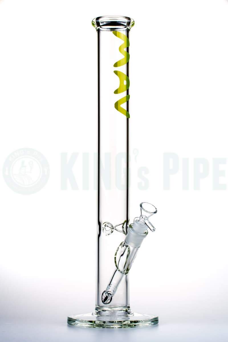 The MAV Glass Straight Water Pipe is a massive 18" sleek & simple, classic beauty. With a single Maverick Glass logo decal right beneath the mouthpiece, and a clear premium-quality, 5mm thick, Borosilicate glass body, this scientific glass bong will definitely last you years on end of smoke sessions. Featuring an ice catcher in it's bottleneck for a cooler alternative when taking a rip, this large tobacco water pipe bong comes with an 18mm Female joint and 14mm / 18mm diffused downstem and bowl. Having been hand-blown in Los Angeles, CA. by the good folks at MAV Glass, this sturdy, wide based American glass bong is guaranteed to be heat resistant & durable!