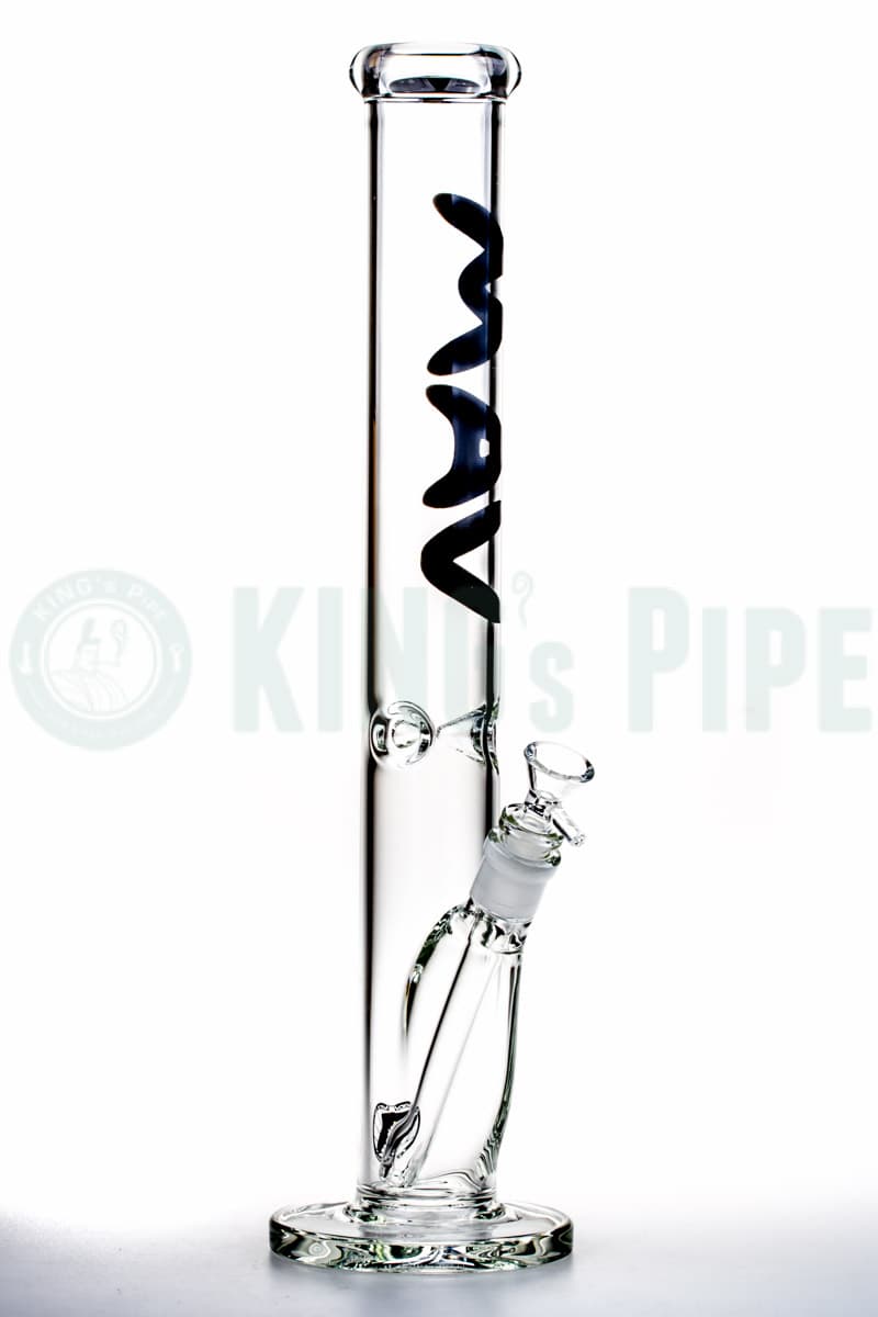 The MAV Glass Straight Water Pipe is a massive 18" sleek & simple, classic beauty. With a single Maverick Glass logo decal right beneath the mouthpiece, and a clear premium-quality, 5mm thick, Borosilicate glass body, this scientific glass bong will definitely last you years on end of smoke sessions. Featuring an ice catcher in it's bottleneck for a cooler alternative when taking a rip, this large tobacco water pipe bong comes with an 18mm Female joint and 14mm / 18mm diffused downstem and bowl. Having been hand-blown in Los Angeles, CA. by the good folks at MAV Glass, this sturdy, wide based American glass bong is guaranteed to be heat resistant & durable!