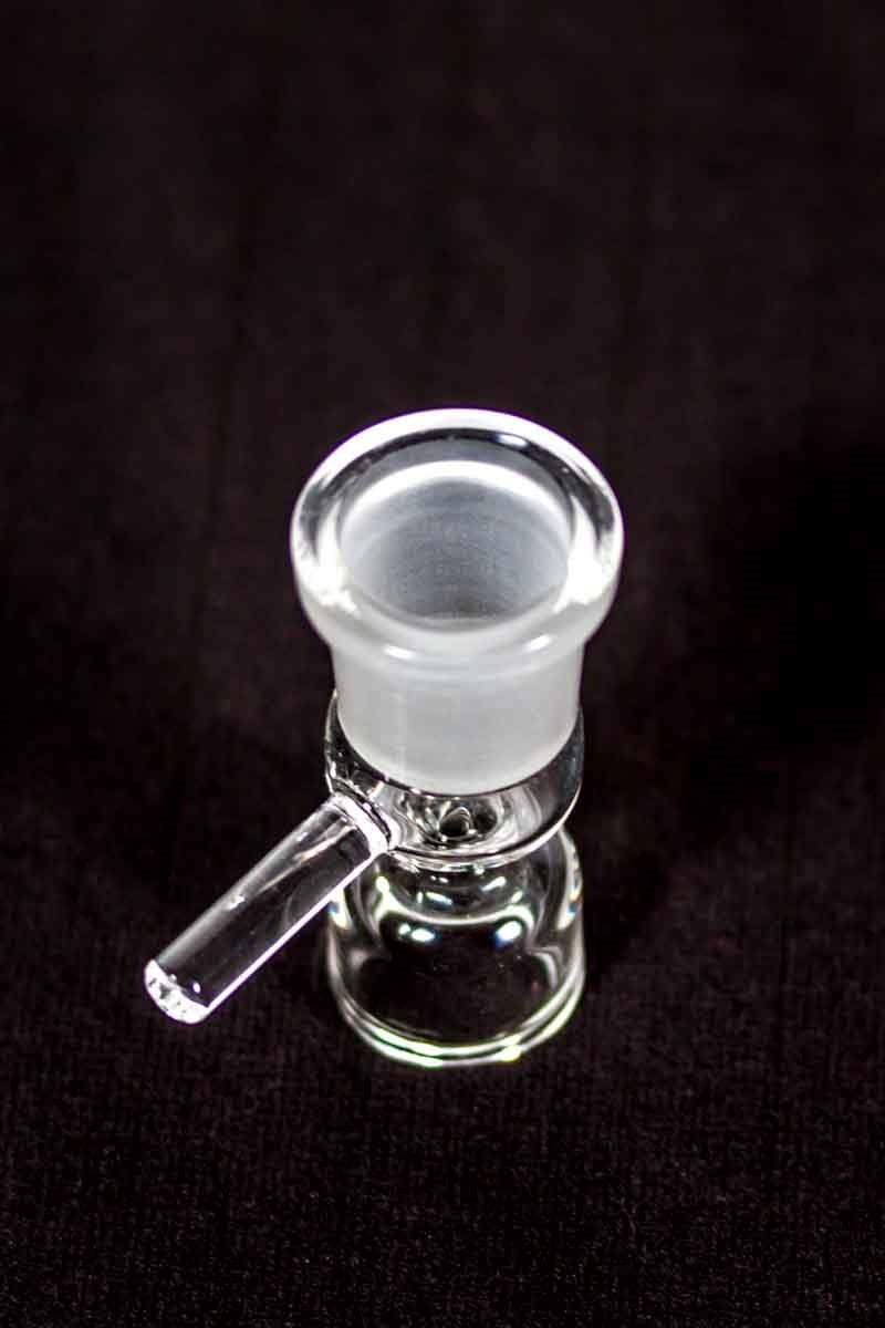 This 14mm Female Slider Glass Bowl is a cool little replacement bowl for your water pipe or backup for when you want to use on your 14mm Male joint dab rig. It's made with a handy little 1" handle so you never have to touch a hot bowl. We also have other sizes so take a look around KING's Pipe Online Smoke Shop and take advantage of our awesomely affordable prices!