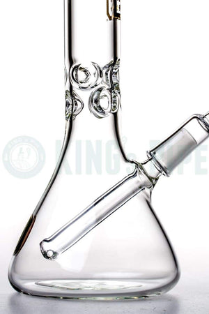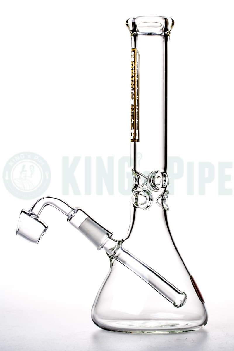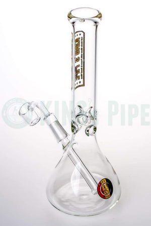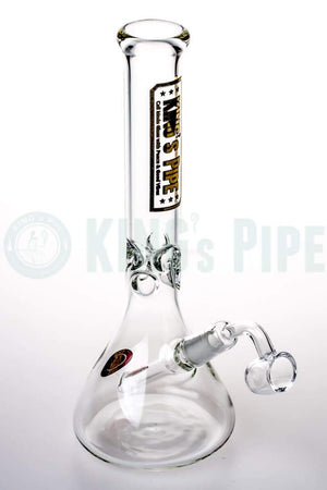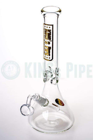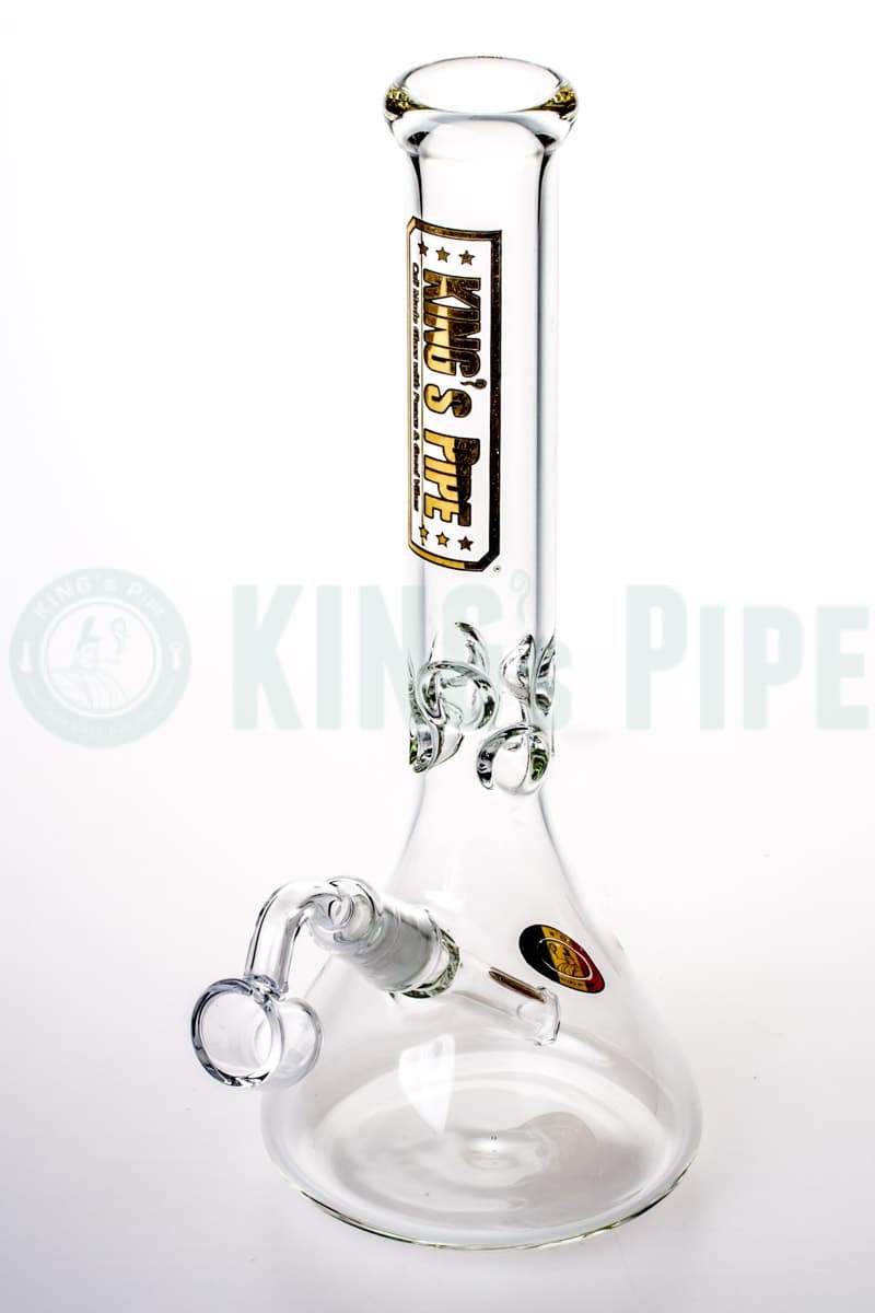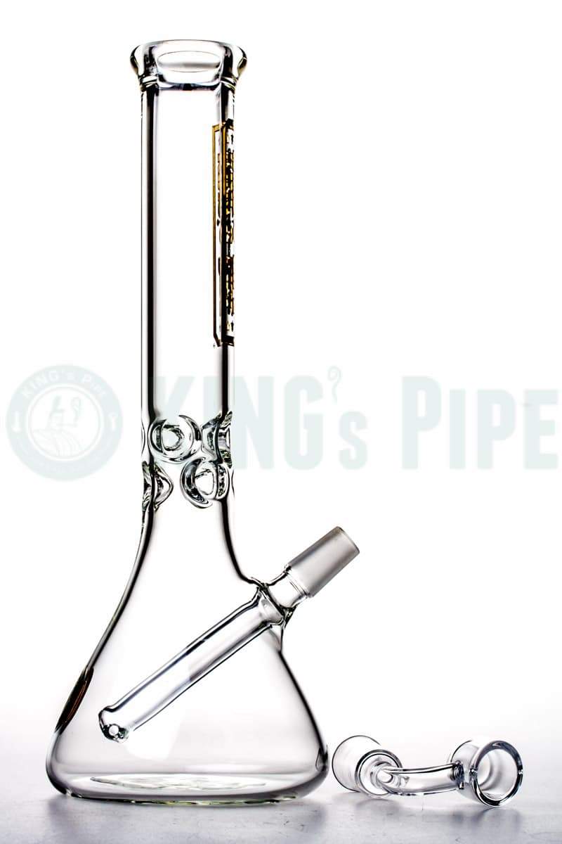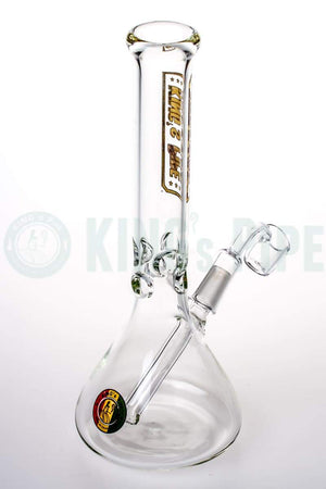Meet the KING's Pipe Glass Skinny Beaker Rig. This sleek glass dab rig is 100% authentic and is handcrafted by KING's Pipe's local LA glassblowers with Peace and Good Vibes! Get this 10" tall and slender-looking beaker oil rig straight from our online headshop and get one our best deals! You won't get enough of this thick American glass made oil rig because of its excellent features that include a 14mm Male Joint that comes with a 4mm Thick 14mm Female Quartz Banger Nail, an Ice Catcher, and a Diffused Fixed Stem Perc. Combining a powerful diffusion with an efficient cooling system is what makes this crystal clear dab rig worthy. Give yourself a royal treatment with this Skinny Beaker Rig when you grab one here at KING's Pipe Online Headshop!